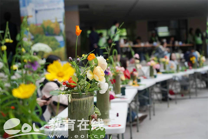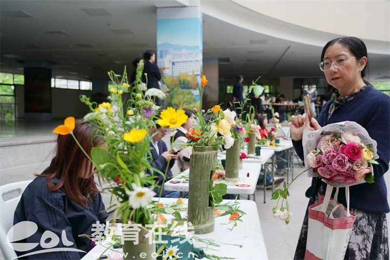 4月28日上午,浙江农林大学东湖校区的活动中心内,该校后勤人员和学生志愿者将修剪下的数千支各色月季花,用报纸包扎成大小不等的花束免费送给广大师生,并组织师生代表同修剪下的月季等花卉枝条进行插花比赛,以此祝各位劳动者节日快乐,暖心举措受到了广大师生的欢迎。
