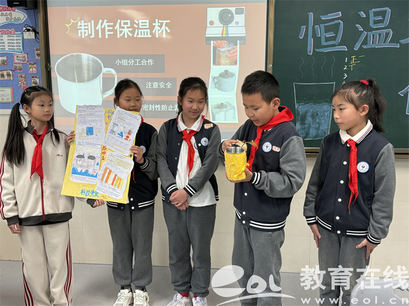 运动后饮水不适、水温难把控?五年级学生以科技破题,开展恒温水杯创新设计。他们以AI为智能参谋,通过平板查询材料特性、优化隔热方案,用泡沫、铝箔等多种材料反复实验,在30元虚拟预算内迭代升级,探究研发可稳定保持40℃-50℃舒适水温的健康水杯,最终做出的水杯顺利通过30分钟实测,用科技搞定生活小难题,让AI与实践完美融合。