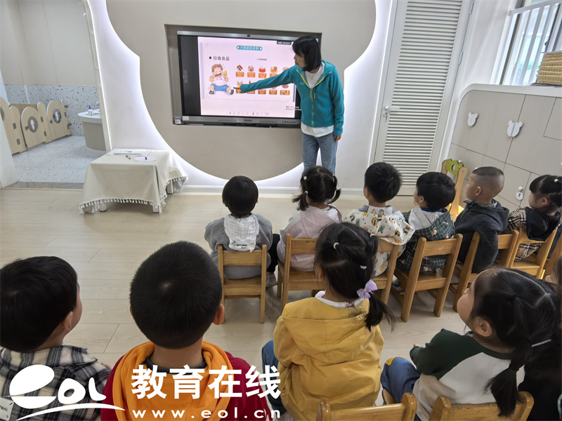 小班的孩子们跟着老师借助生动的视频和PPT,为孩子们揭开了健康食品与垃圾食品的神秘面纱。屏幕上,薯片、烧烤、冰淇淋等垃圾食品虽诱人,却隐藏着健康隐患;而苹果、牛奶、鸡蛋等健康食品,则是成长的好伙伴。通过直观对比,孩子们对两类食品有了初步的认识。