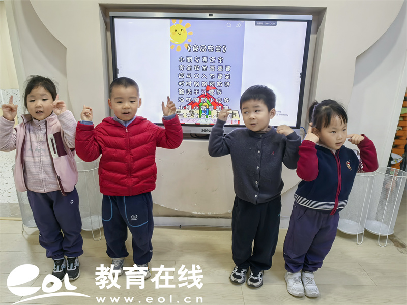 中班的小朋友们则发挥创意,将食品安全知识编成了一首朗朗上口的儿歌:“小朋友要记牢,食品安全最重要,病从口入不要忘,时时刻刻预防好,油炸腌制少吃好……”简单易记的歌词,让孩子们在歌唱中轻松掌握了健康饮食的小秘诀。