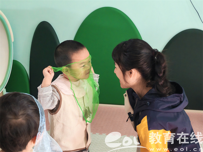 活动在温馨的晨间互动中拉开序幕,老师们通过趣味打招呼小游戏,帮助宝贝们快速适应集体环境,消除陌生感。春日律动《彩色的春天》趣味十足。陈老师引导宝贝们触摸、感知彩色纱巾的柔软质感,认识缤纷色彩。