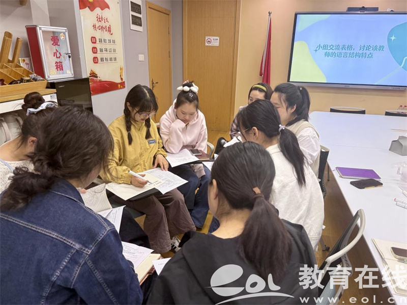 视频观摩结束后,教师们以小组为单位,结合观察记录表,围绕执教教师的语言结构特点展开研讨。各小组从提问的开放性与层次性、评价的针对性、指令的清晰度、小结的有效性等维度,分析了执教教师语言的优势与可优化之处,并结合自身教学实践,探讨了语言优化的具体策略。研讨中,教师们不仅对案例中的教学语言进行了专业剖析,也对自身日常教学中的语言使用进行了反思。