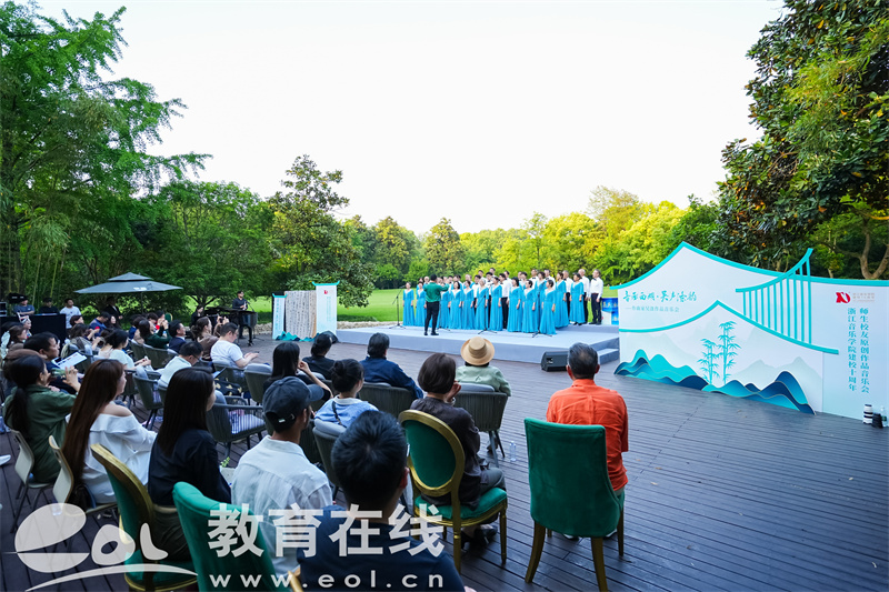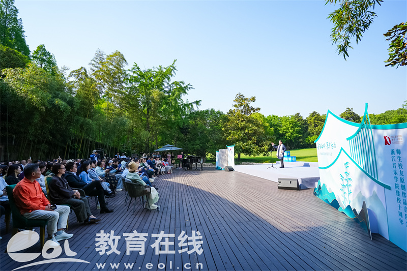 4月26日下午,一场融合原创音乐、沉浸画展与自然景观的跨界演出——“音画西湖·吴声涤韵”作曲家吴涤作品音乐会暨浙江音乐学院建校10周年师生校友原创作品音乐会在杭州西子湖畔的渊美术馆举行。浙音师生、校友和艺术家用跨界融合的音乐表达与真情演绎,向浙江音乐学院建校10周年和西湖成功申遗15周年献礼。