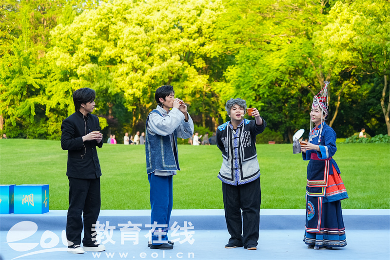 其中,小提琴独奏《杭州》以琴弦为笔,勾勒出城市发展故事的文化肌理;群舞音乐《青瓷》则以身体语言诠释龙泉青瓷“青如玉、明如镜”的温润质感,与西湖的湖光山色互为映衬,生动诠释了“人与自然和谐共生”的文化意象;畲族音乐剧《有凤来仪》选段《酒喜唠》与歌曲《凤凰飞进中国梦》,则将少数民族风情融入现代音乐语汇,展现了浙江文化的多元与包容。