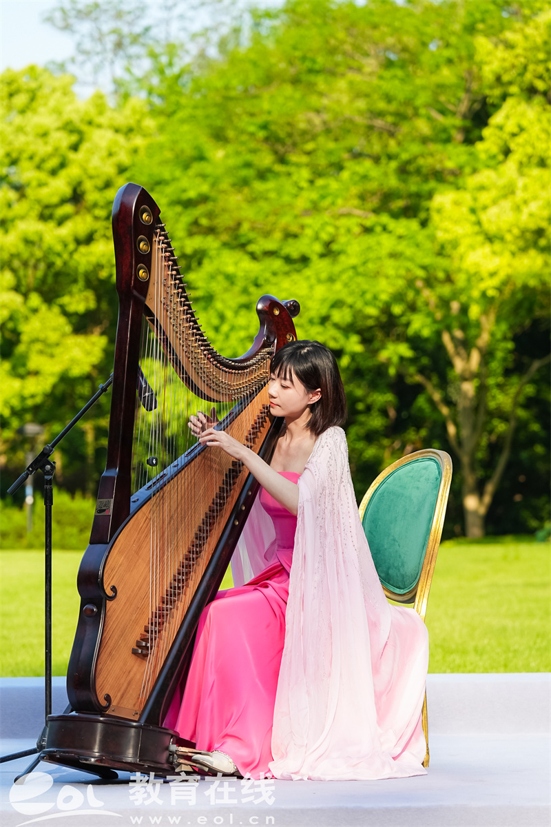 尤为引人注目的是,由吴涤作曲、浙音校友单正昌担任编剧和作词的原创音乐剧《西湖·拾景》选段惊艳亮相。其中选段《水灵灵的西子》将西湖的波光粼粼化作灵动的听觉符号,以优美的旋律生动描绘西湖的意境与神韵;选段《触摸西湖》则以极具感染力的旋律,将西湖从地理名词升华为精神图腾;箜篌独奏《西子画廊——水之舞》,其清越空灵的音色与渊美术馆内的艺术画作及西湖的实景交相辉映,成为“音画西湖”理念的生动注脚。