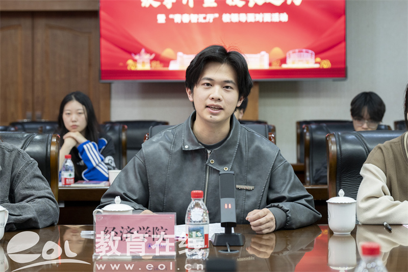 校党委副书记、副校长(主持行政日常工作)戴道锌,校党委副书记王迪钊,与相关职能部门负责人、各学院学生代表围桌座谈,共赴一场聚焦成长、共话发展的青春之约。校、院学生会代表化身“校园体验官”与“治理观察员”,围绕成长平台搭建、活动空间改造、后勤服务提质等热点问题,畅所欲言、各抒己见。