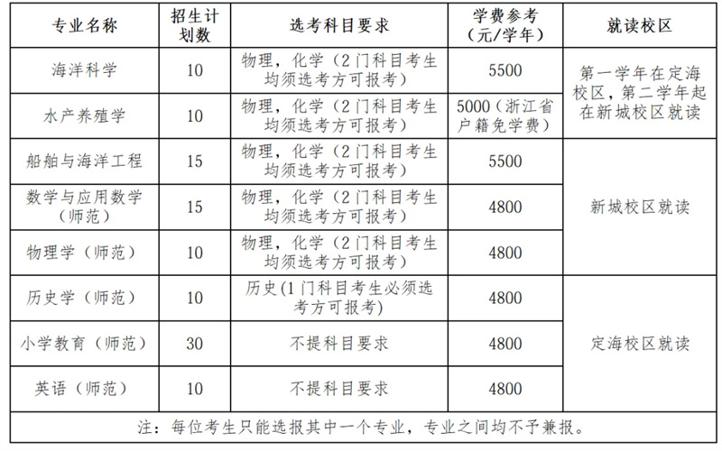注:有关综合素质测试安排将提前在浙江海洋大学本科招生网进行公布。