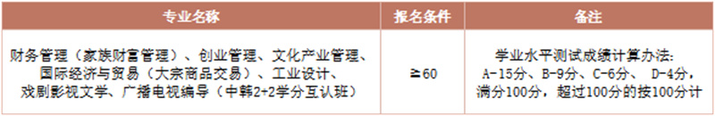 2.普通高中学业水平考试成绩均为合格(含)以上(以报名截止日期前已取得的成绩为准),且符合报考我校专业相应学业水平测试成绩最低要求(详见下表);