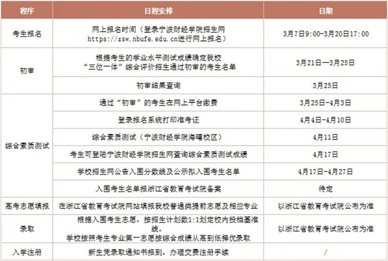 第十二条 报名方式:2026年3月7日9:00—3月20日17:00,申请人进入宁波财经学院招生网,登录“2026年‘三位一体’综合评价招生报名系统”,完成报名手续,每名考生限报1个专业。