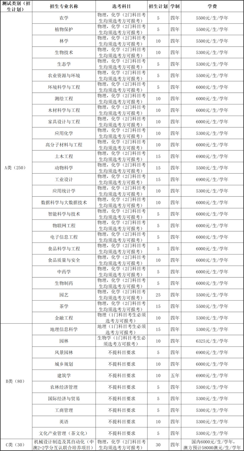 2.机械设计制造及其自动化(中澳2+2学分互认联合培养项目)专业学生完成国内培养并通过考核后可赴澳大利亚昆士兰大学就读,在澳大利亚学习期间须正常向浙江农林大学缴纳学费及学校要求的其他相关费用,澳方学费预计58000澳元/生/学年,专业教学培养使用的外语语种为英语。项目录取的学生管理按照上级相关规定和《浙江农林大学“中外高水平大学学生交流计划”“2+2”学分互认中外双学位联合培养项目学业管理规定(试行)》执行。