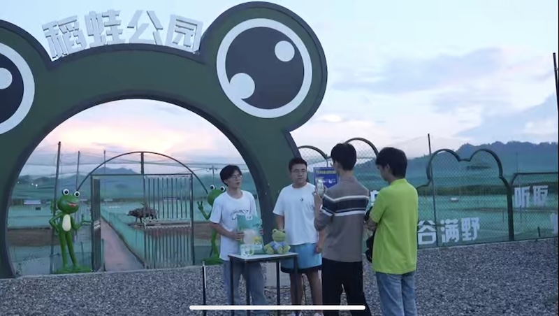 团队还通过直播助农、品牌推广等方式,提升“稻蛙共生”产品的知名度和附加值。8月24日,团队项目得到了浙江卫视“了不起的家乡”节目报道,团队负责人王一泽现场推介生态大米和蛙类产品,进一步扩大了品牌影响力。
