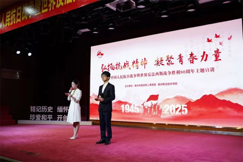 由衢州市退役军人事务局、衢州职业技术学院联合主办的“弘扬抗战精神·凝聚青春力量”主题宣讲活动在衢州职业技术学院举行。