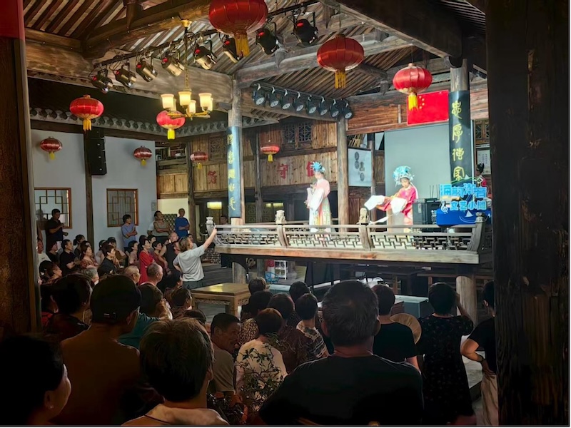 “在墙头,每个转角都可能遇见艺术的惊喜。”许多村民和游客都兴奋地描述着“星耀四明·海韵潮音”——“转角遇艺”系列文化活动带来的美好体验。从溪里方古戏台到海边观景台,从老街巷口到村口文化墙,从中医药文化广场到墙头新潮咖啡屋,艺术的光芒悄然融入乡村肌理,点亮了每一个寻常角落。非遗展示熠熠生辉,即兴表演光彩照人,互动体验趣味盎然。在墙头镇人民政府指导下,文艺轻骑兵们如同文化的“点灯人”,与文化特派员以“健康药美·浙学乐游·君臣佐使”城乡美育模式为引领,为村落量身定制文化“处方”,让传统文化在现代语境中重焕生机。象山“唱新闻”国家级非遗传承人李素琴老师动情地说:“过去我们唱的是家长里短、民间故事,现在唱的是乡村振兴、百姓心声。这不是简单的演出,是文化的‘活化’,‘传’下去的希望。”