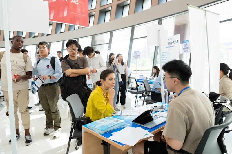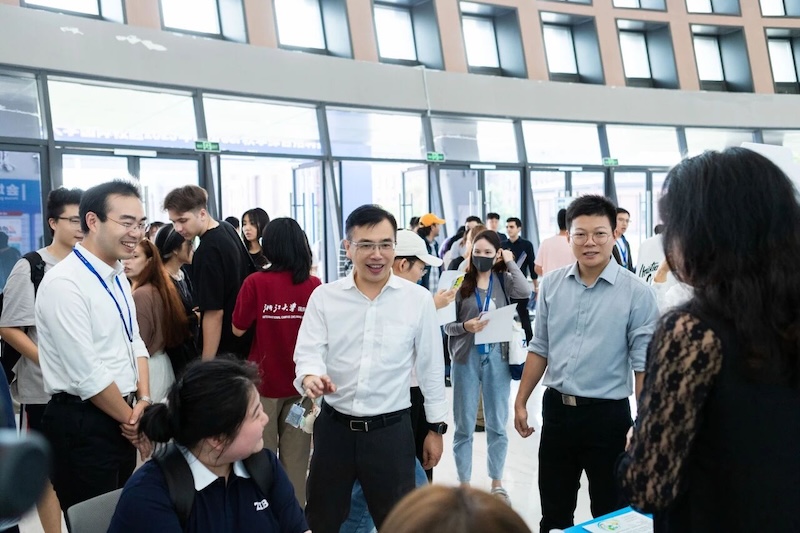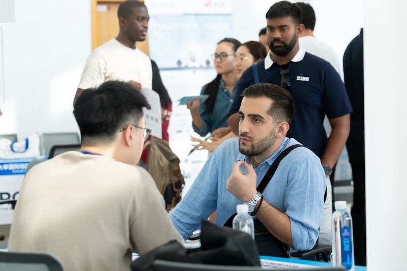 正在攻读金融专业的Sapteeva Sofia说,这是她第一次参加面向中外学生的引才活动,国际化招聘会,加深了她对中国环境、文化和职场的理解,并表示以后也要在中国实习。目前在学习汉语的Sikalam,未来计划尝试贸易行业。他在活动上详细了解了杭州、海宁位于长三角的经贸优势与开放环境,“这里的区位与政策优势,为我未来的贸易事业带来很多可能性”。多位来自低年级的同学表示,通过此次活动,他们对心仪行业的招聘需求、职业发展路径有了更为清晰的认识,有助于更科学地进行生涯规划。同时,不少高年级同学及准研究生则带着简历和更明确的目标前来,他们积极寻找与自身专业方向契合的实习或科研实践岗位,期望将理论知识应用于实际场景,为未来的深造或就业积累关键经验。