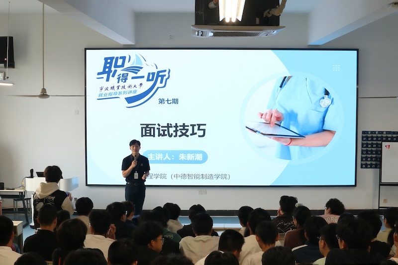 (通讯员:葛田)10月23日下午,宁波职业技术大学机电工程学院(中德智能制造学院)举办了一场别开生面的就业指导讲座。海天塑机集团人才银行副总经理、宁波市青年职业经理人委员会副会长朱新潮受邀担任主讲,以“面试技巧”为主题,为现场90余名学生带来了一场内容丰富、实用性强的职场预备课。
