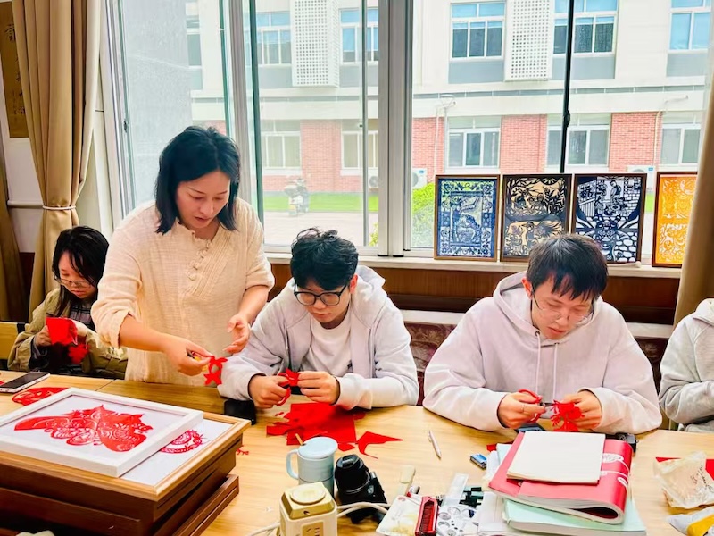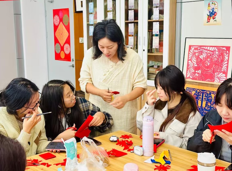 (通讯员:肖薇 摄影:詹兴江)“剪刀要跟着线条走,力度轻了形散,重了纸破……你看这茱萸的叶脉,得像古人写诗那样藏着心意。”重阳佳节,宁波财经学院民艺工作室里,张霞儿老师手持红纸与剪刀,为23级视觉传达专业的学生示范脱稿剪纸技法。