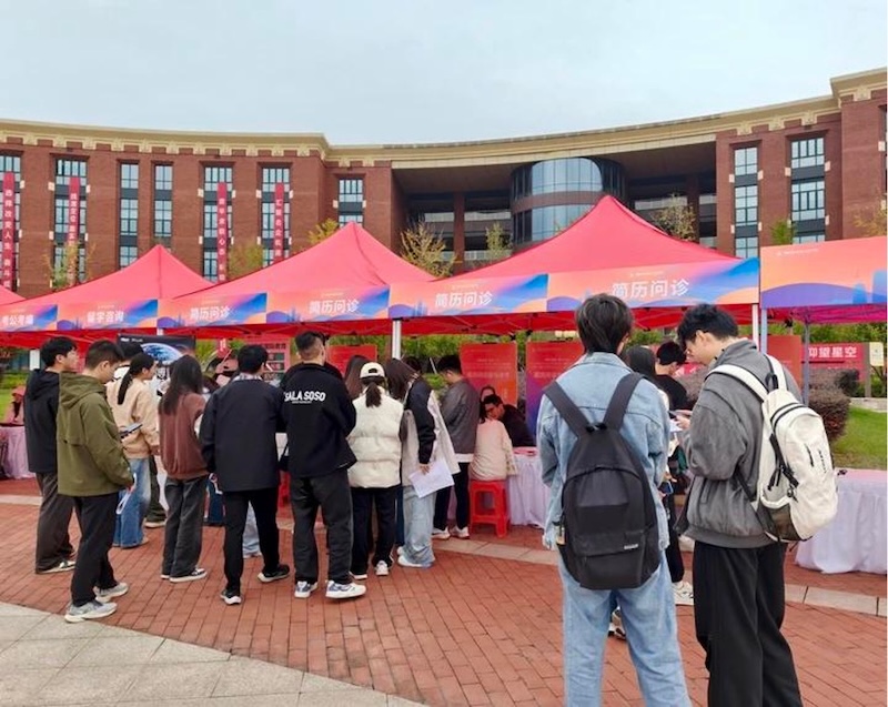 招聘会创新打造“一站式”就业服务体系,现场设置简历问诊、考研考公、留学入伍等6大咨询服务专区,引入浙江省创业导师、全国职业生涯规划大赛金奖指导教师团队,为毕业生提供个性化简历优化、面试技巧提升等精准指导。佛堂镇人武部现场解读入伍政策,吸引百余名学生咨询报名;简历实验室服务区人头攒动,学生可即时修改简历并打印成品,实现“问诊-修改-投递”无缝衔接。据统计,活动当天累计为2000余名学生提供咨询服务,优化简历超1500份,助力毕业生提升求职竞争力。