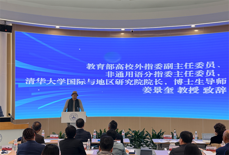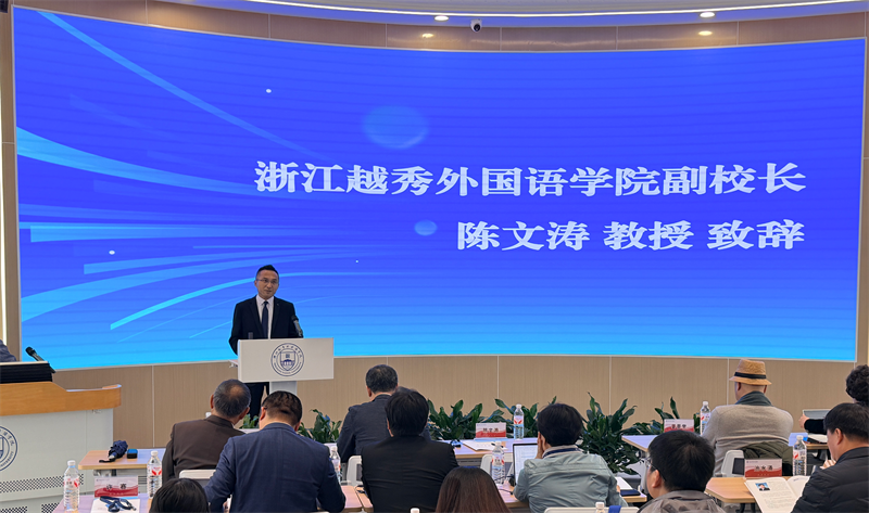 在开幕式上,浙江越秀外国语学院副校长陈文涛教授与教育部高校外指委副主任委员、清华大学国际与地区研究院院长姜景奎教授分别致开幕辞。