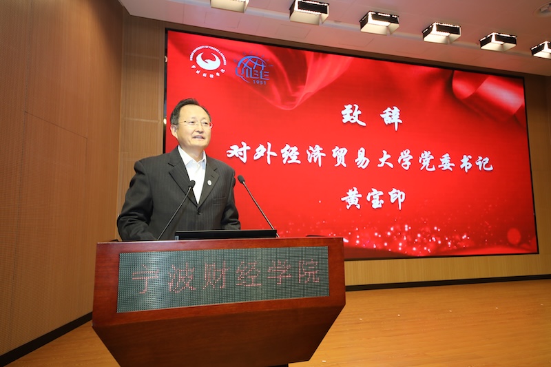 论坛开幕式上,宁波财经学院党委书记、副校长王春潮,对外经济贸易大学党委书记黄宝印,浙江省社科联副主席傅晓三位嘉宾先后致辞。王春潮书记聚焦校地协同与学科赋能,强调金融创新对企业出海的支撑作用;对外经济贸易大学党委书记黄宝印表示,当前需立足国家战略与金融改革开放大局,结合宁波深厚的外贸底蕴,以第五届论坛“金融助力企业出海”为重要抓手,依托高校在科研、人才培育及产学研合作方面的优势,汇聚学界、业界、政界等各方精英,共同探索企业出海的金融支撑路径。这既是学习贯彻党的二十届四中全会精神的具体实践,也是高校积极担负中国式现代化建设使命的必然要求;傅晓主席结合区域发展实际,阐述金融与数字经济融合的地方实践价值。