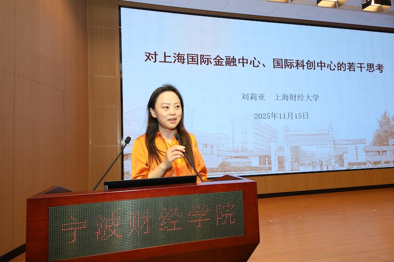 宁波财经学院党委委员、副校长李国平主持并发表主旨演讲,业界权威专家带来兼具理论深度与实践价值的分享。浙商银行首席经济学家、对外经济贸易大学二级教授殷剑峰聚焦未来宏观金融环境为中美经济、中日经济博弈的现状提出清晰研究框架,解析AI发展对经济的影响;上海财经大学副校长刘莉亚从金融制度和政策视角切入,在科创金融机制、资本结构与企业生命周期层面对科创企业在金融匹配程度的深度分析,为地方在推动科创金融改革等方面提供了创新思路;华东理工大学副校长阎海峰对世界经济局势的复杂变化、地缘政治冲突和人工智能等新力量在持续推动企业国际化进程进行分析,指出跨国企业的撤资对个体、公司和宏观经济层带来深远的影响。