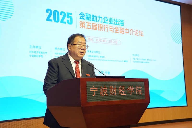 (通讯员:王崇叶 摄影:王伟)11月15日,第五届银行与金融中介论坛在宁波财经学院举行。论坛由对外经济贸易大学与宁波财经学院联合主办,对外经济贸易大学中国金融学院、宁波财经学院国际经济贸易学院联合承办。本届论坛以“金融助力企业出海”为核心主题,通过主旨演讲、圆桌论坛、分论坛研讨等多元形式,搭建起学术交流与实务对接的高端平台,为政产学研各界共探企业“走出去”金融支撑路径提供了重要契机。