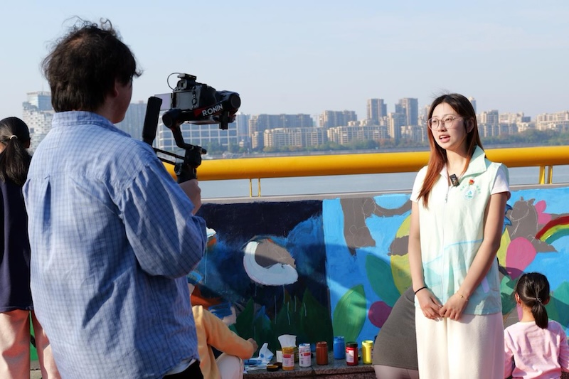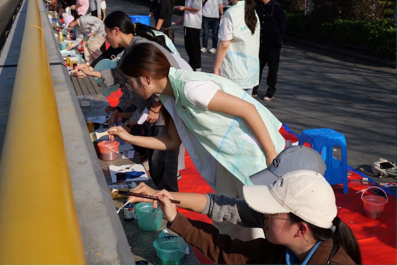 “调配颜料、勾勒线条、清理场地,虽然初冬江风微凉,但大家都干劲十足。”参与活动的环境学院学生姚露丹介绍,近6小时的实践中,同学们分工协作,专注创作的身影吸引了大批市民驻足。不少家长带着孩子边看边学,在彩绘前了解钱塘江生态保护知识。“这些彩绘不仅美化了江岸,更让环保理念在潜移默化中影响孩子。”一位市民的感慨道出了现场不少人的心声。从单一环保宣讲到多元生态科普,活动既让学生在实践中深化了对专业知识的理解,增强了建设美丽中国的使命感,也有效提升了沿岸市民的生态保护意识,推动低碳生活习惯养成。