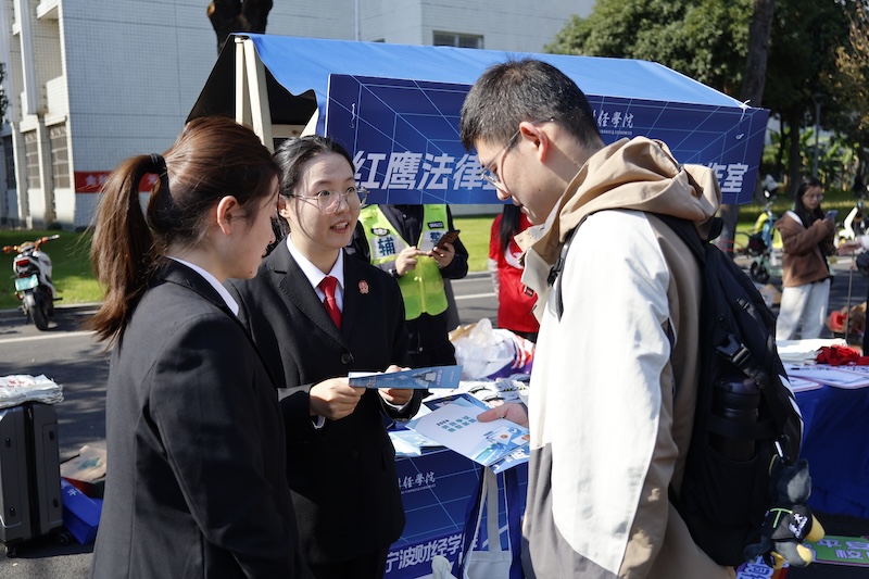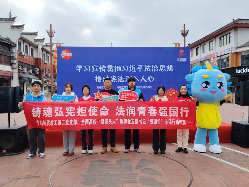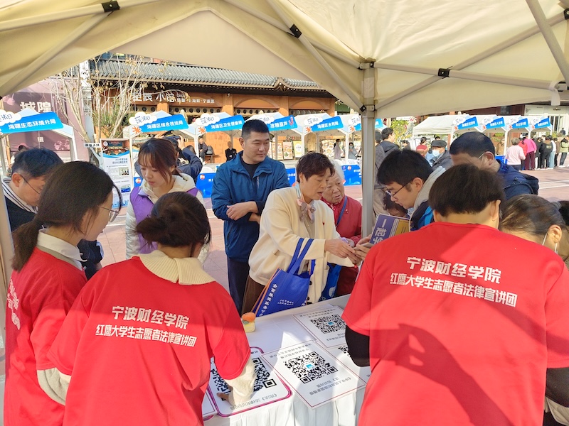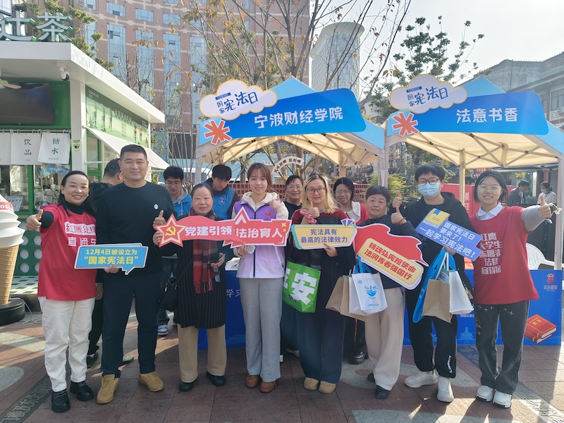 12月2日,在宁波市海曙区城隍庙步行街,该校师生积极参与“12・4”国家宪法日暨“宪法与浙江”主题宣传月活动,通过案例解读、资料发放、现场答疑等方式,用通俗语言向市民普及宪法知识。“原来宪法离我们这么近!”鲜活生动的讲解让群众驻足流连,法治清风在街头巷尾悄然吹拂。