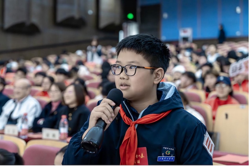 金慧湘老师主持的“宪”学“宪”用抢答闯关点燃了全场热情,“公民的基本权利包括哪些?这个题我会!”小港中心学校的学生们高高举起小手,大学生们则在抢答“宪法修正案”等题目时展现出扎实的知识积累,现场气氛异常热烈。最后,大学生与小学生们同唱《宪法伴我们成长》,清朗的歌声缠绕回荡,将课堂氛围推向高潮。“歌声里有我们对宪法的热爱,更有做守法小公民的决心!”北仑区小港中心学校五年级学生陈艺说道。