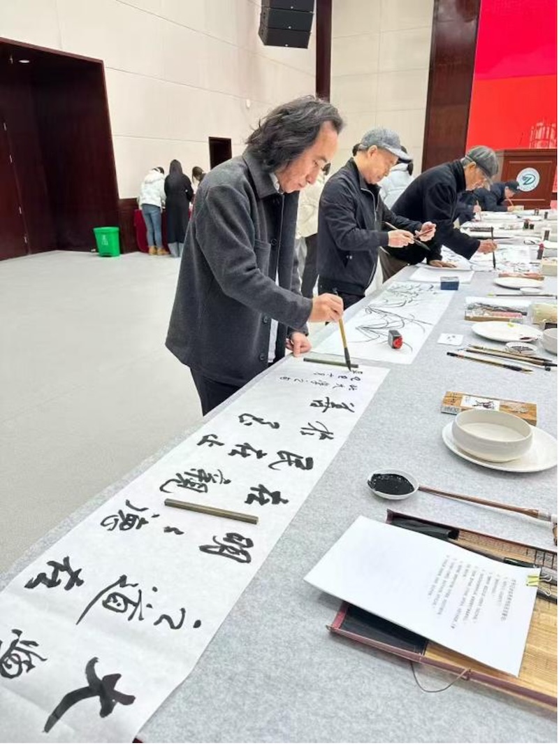 学院向董文运、罗汉、陈丰松、王凯、吴常青等五位艺术专家颁发文化素质教育研究院特聘导师证书。现场举行了笔会活动,艺术家们与学院师生齐聚一堂,泼墨挥毫,尽情挥洒,一批反映国学名言、时代精神与校训校风的作品应用而生,现场不时发出阵阵赞叹声。师生们纷纷表示,近距离观摩艺术家们的创作并聆听专业的讲解,沉浸式体验艺术创作的审美过程,这样的机会非常难得,希望以后能有更多这样的机会,用艺术涵养品格,提升修养。