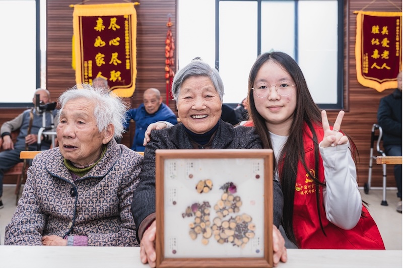 准备工作就绪,党员们与爷爷奶奶共同制作“中草药创意拼贴画”。他们帮助挑选枸杞、菊花、艾叶等材料,依据爷爷奶奶们喜爱的图样进行摆放构思,细致辅助粘贴固定,爷爷奶奶们则认真投入地调整布局,彼此配合默契。原本朴素的中草药材料,经过巧思与协作,逐渐在画板上演变成一幅幅寓意健康、纳福、顺意的装饰画作。看着自己亲手完成的作品,老人们的脸上洋溢着喜悦与满足。这些凝聚着心意与祝福的拼贴画,将成为爷爷奶奶们房间中富有纪念意义的装饰,也是一道承载着温暖记忆的风景。