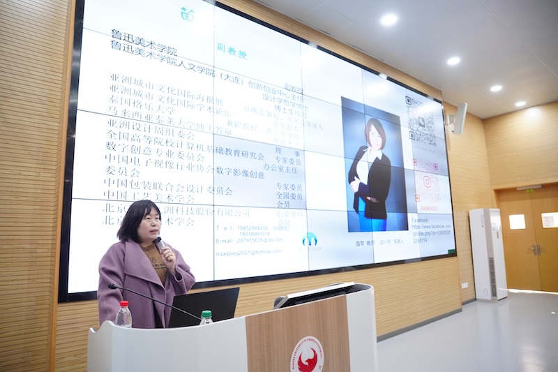展览开幕当天,还举行了专题学术讲座。展览总策划、总策展人、鲁迅美术学院副教授苗苹博士以《城市文化・创意・赛事中的叙事与表达》为题,围绕亚洲城市文化叙事、设计创意实践与国际赛事经验展开深入分享,为现场师生带来一场兼具理论深度与实践启发的学术盛宴。