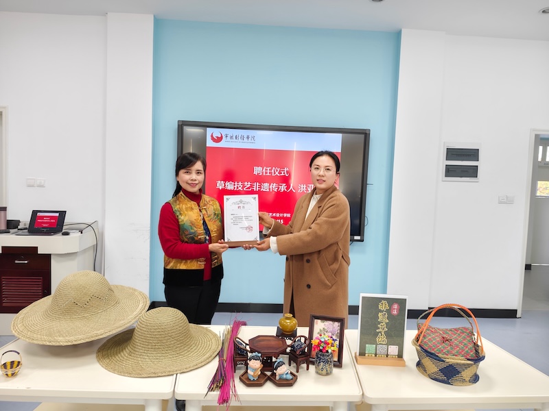 12月17日,草编技艺非遗传承人洪亚儿走进宁财院艺术设计学院的“非遗大师进校园”活动,受聘为艺术设计学院项目导师。活动现场,洪亚儿给大学生们带来了一堂沉浸式的草编技艺现场教学。她带着学生从选草开始,手把手教授编织技法,让学生亲身感受一根蔺草如何经由双手变为艺术品。