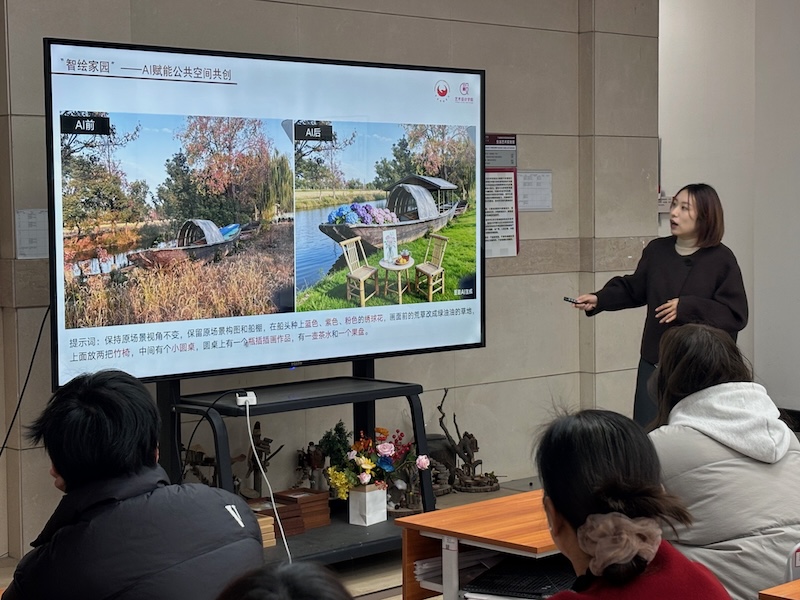“传统乡村景观设计常面临村民参与度低、方案落地难、风格不贴合乡土等问题。”宁波财经学院乡村美育中心负责人张宁介绍,此次课程正是希望用AI技术降低专业门槛,让村民成为乡村建设的核心力量。通过“校地协同、师生联动、村民参与”的模式,高校的专业资源与乡村的实际需求精准对接,既提升了村民的审美素养和创意能力,也为学生搭建了服务乡村的实践平台,实现教学相长、校地共赢。