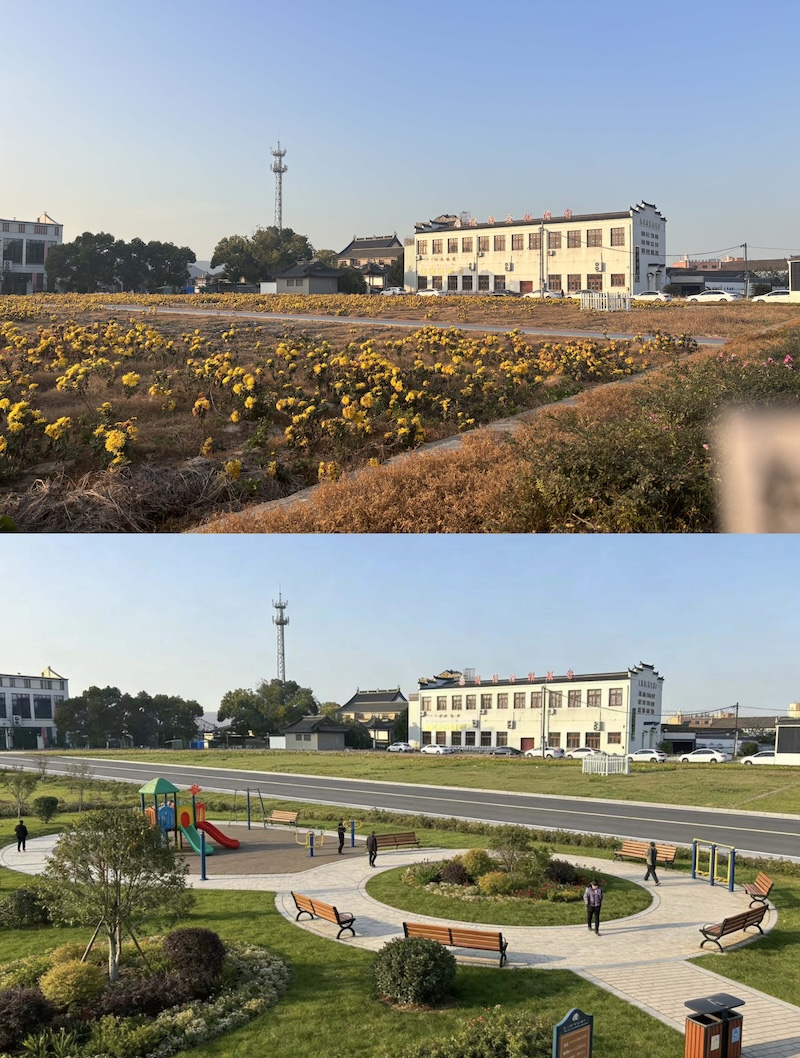 茂新村村民金央央的创作过程颇具代表性。凭借多年农耕经验,她提出“稻浪里的乡愁”设计思路——把稻田景观与休憩空间相结合。在学生协助下,AI工具快速生成多版方案:金黄稻田旁蜿蜒着木栈道,休憩亭掩映在稻穗间,丰收元素点缀的座椅错落有致,直观呈现了“看得见田、记得住乡愁”的乡村图景。“以前觉得设计是专业人士的事,现在才知道,我们对家乡的了解,也是最好的设计灵感。”金央央看着方案,脸上满是自豪。