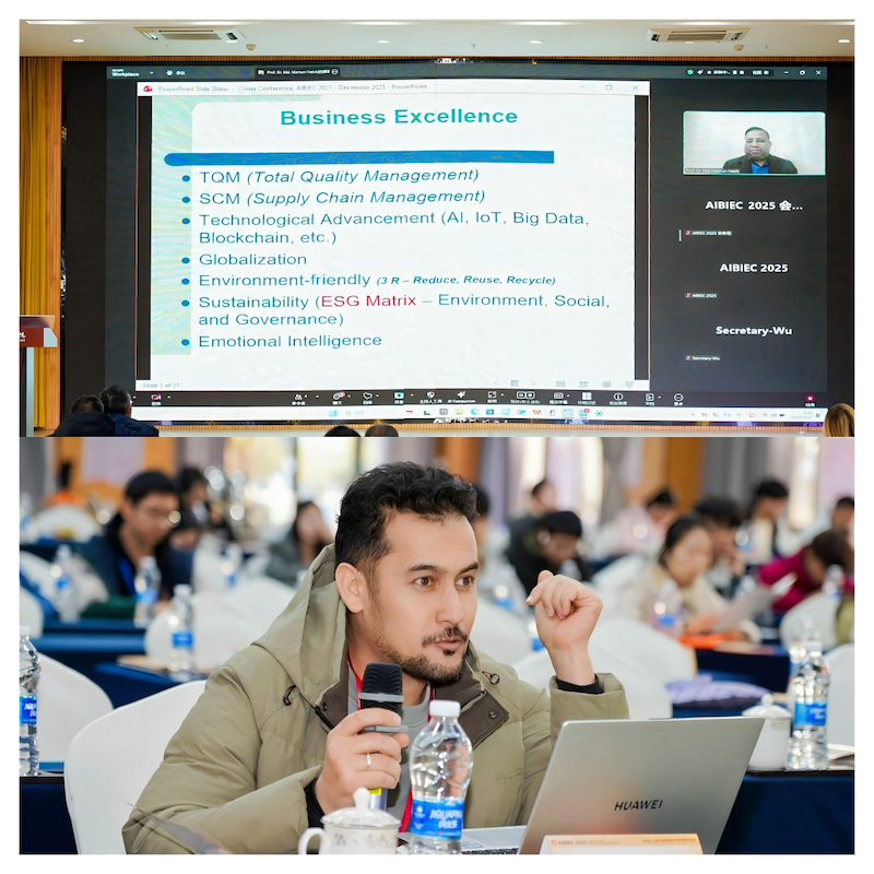 下午2时,海外专家主旨报告如期开展。孟加拉国独立大学Md. Mamun Habib教授以线上形式参会,作题为《供应链和全面质量管理:商业智能的工具》的主旨报告。他立足全球供应链发展趋势,结合全面质量管理理念,深入解读商业智能工具在提升供应链效率、优化质量管理中的应用价值与实践策略。报告结束后,线上线下联动开启问答交流环节,参会者围绕跨境供应链管理等相关议题与Md. Mamun Habib教授深度探讨,有效推动了跨地域学术思想的碰撞与融合。