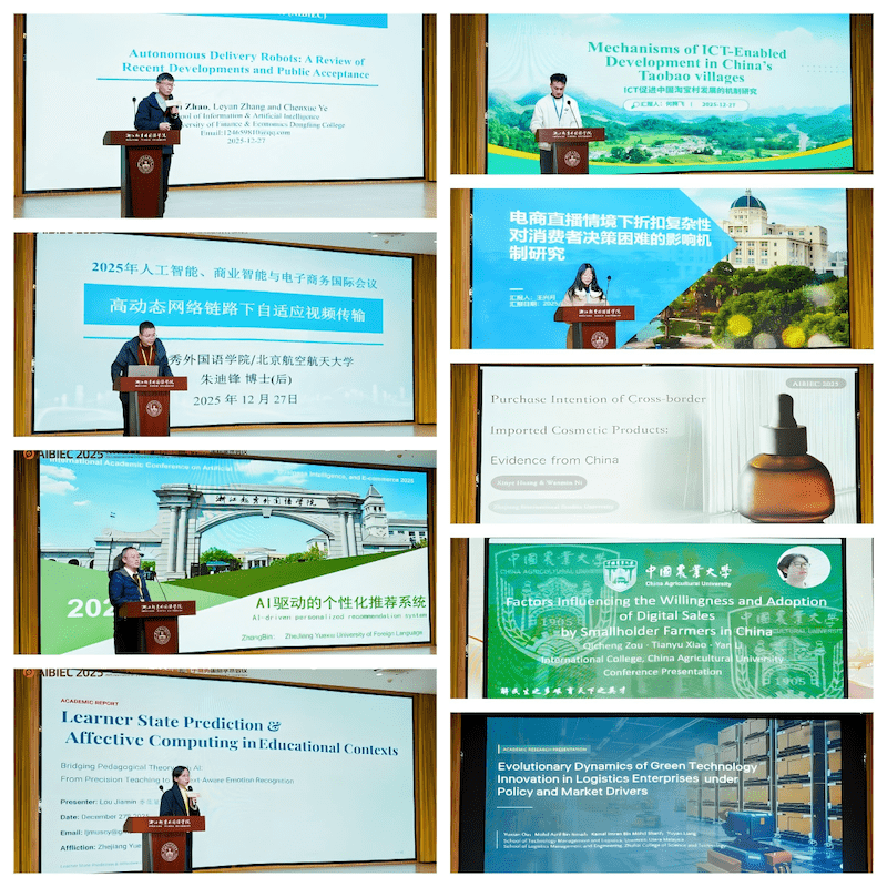 12月27日,2025年人工智能、商务智能与电子商务国际学术会议(AIBIEC 2025)在浙江越秀外国语学院国际学术交流中心越秀厅顺利召开。会议以“人工智能赋能商业创新,数字技术驱动电商发展”为主题,汇聚中外学术精英,聚焦多个前沿领域,通过多元形式搭建国际研讨平台。会议由山东师范大学教授臧文科,浙江越秀外国语学院数字贸易学院电商与人工智能系副主任朱迪锋博士、跨境电商教研室主任陈敏敏共同主持。