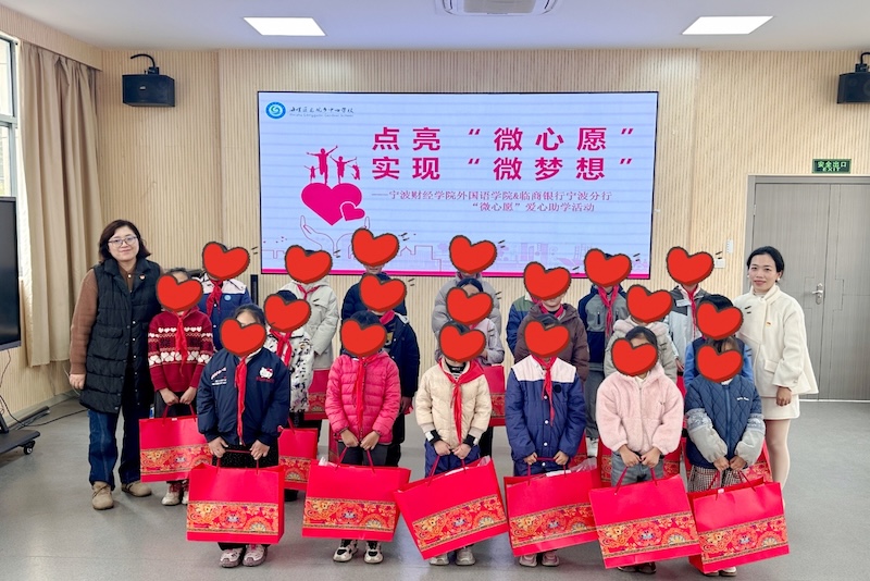 (通讯员:林虹 杨燚娜)1月6日,海曙区龙观乡中心学校的教室里暖意融融。宁波财经学院外国语学院党员师生代表刚走进教室,12岁的马凯鸽就蹦跳着迎上前:“大哥哥大姐姐你们来啦,等你们好久啦!”当20份承载着爱与期待的礼物逐一送到孩子们手中,这场延续五年的“点亮微心愿,传递大温暖”的主题活动,早已超越简单的物质帮扶,成为党建引领下校地协同育人的生动实践。