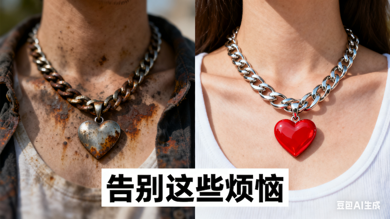 没有专业影棚和模特,吕振凤教学生用豆包、即梦AI等AI工具进行场景合成。“AI生成需要反复调试。”24电商Z2班的郑欣怡分享了一次“翻车”经历:她使用豆包生成项链图,结果项链不是挂在头上,就是换了个样式。经过三四轮指令调整,她终于得到满意结果,再用Photoshop稍加修饰,专业的电商主图便诞生了。