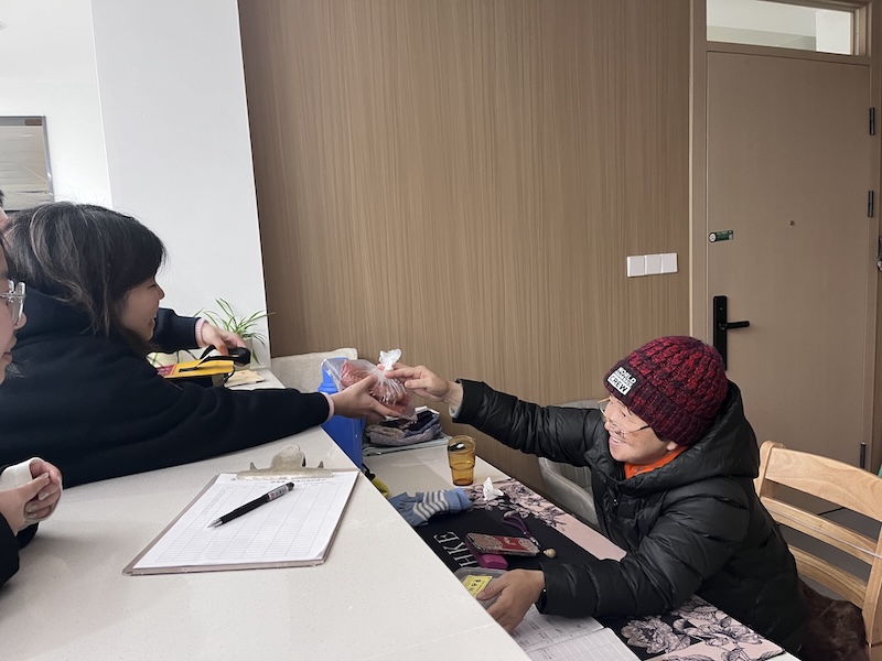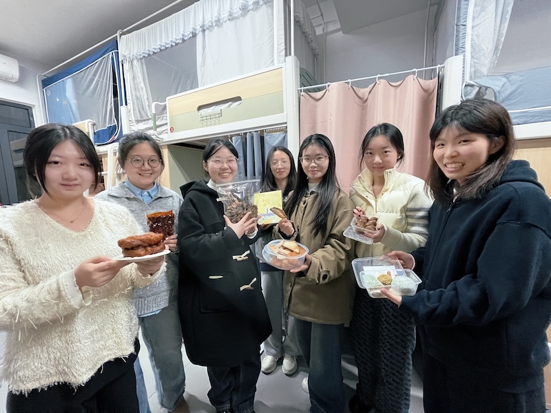 聚餐结束后,大家也没忘了把这份快乐传递出去。她们特意留出几盒米果、绿豆糕,送给了一楼的宿管阿姨。阿姨接过特产,也笑着回赠了她们自己带来的家乡小吃。小小的分享,让这个开学季,从舌尖暖到了心间。