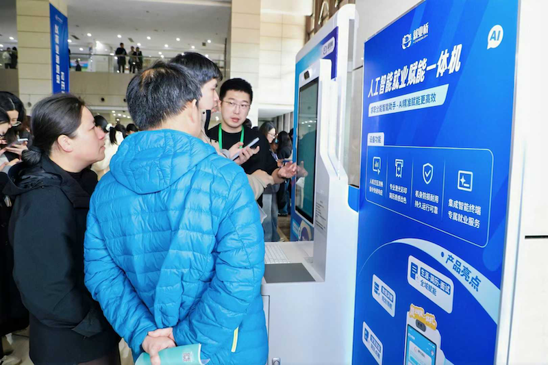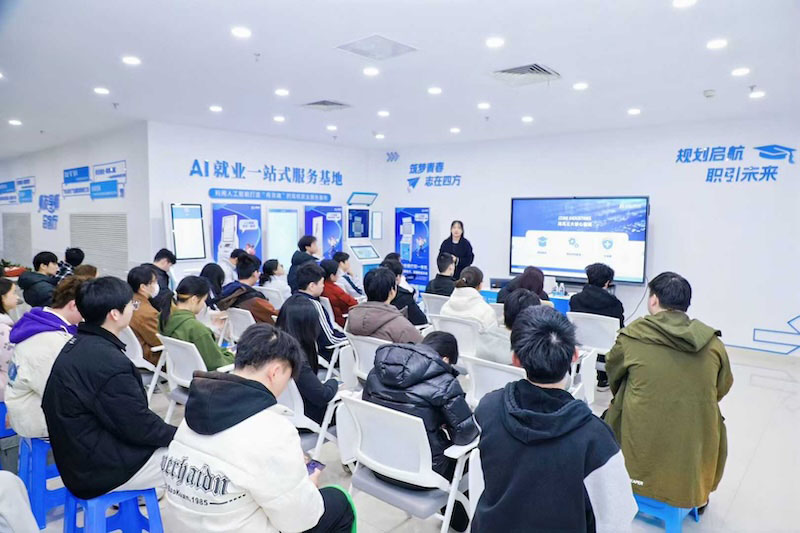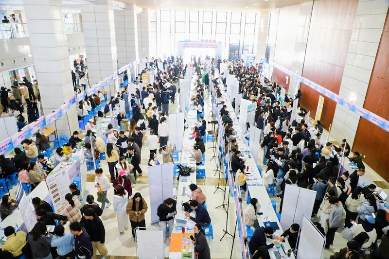招聘会现场人头攒动、洽谈热烈,毕业生们手持精心打磨的简历主动对接招聘负责人,不少学子提前通过学校一站式就业服务平台筛选意向单位、准备专属简历,实现精准求职;各用人单位详细介绍企业福利、职业发展通道,多个企业展位前排起长队。招聘会现场还同步开展系列配套促就业活动:“就业政策直通车”专区,省、市相关部门工作人员现场讲解应届大学生租房补贴、青荷驿站申请、公租房保障等福利政策,把政策红利送到学子身边;“师友导师会客厅”里,企业人力资源专家开讲“名企公开课”,分享行业前沿动态与实用职场经验;“AI就业一站式服务区”内,数字求职机、智能面试舱等科技设备吸引师生体验,以科技赋能提升求职效率,一站式的就业服务获得学子们的一致好评。
