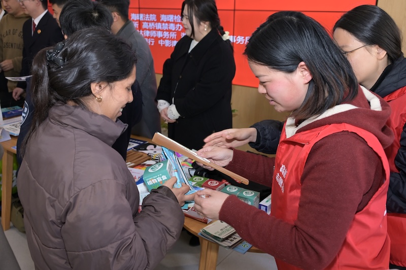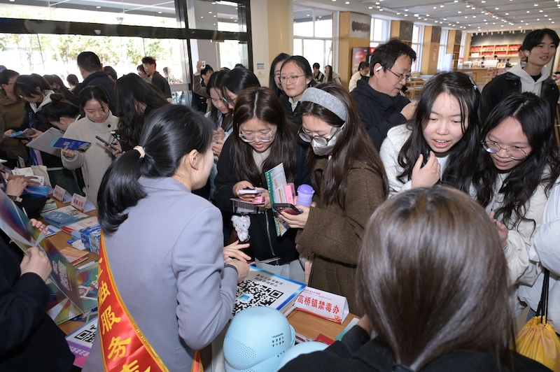 活动现场,高桥司法所、高桥派出所的工作人员向师生发放维权普法与防范校园诈骗传单,高桥镇禁毒办设置的仿真毒品展示台,让师生直观认识到新型毒品的伪装形式与危害。学院社区、蒲家社区的社工还分享了社区居民的真实维权案例,让师生了解日常生活中的各类消费陷阱及应对办法,不少师生边听边记,直呼“干货满满”。