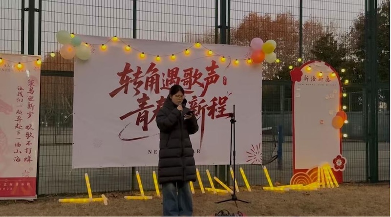 随着活动深入,“开放麦”环节点燃全场热情,在轻快的吉他声中,同学们自发走上舞台,开麦互动,用歌声诉说对新学期的美好期许,台下观众轻声和唱、掌声阵阵,青春的力量在互动共鸣中凝聚升腾。