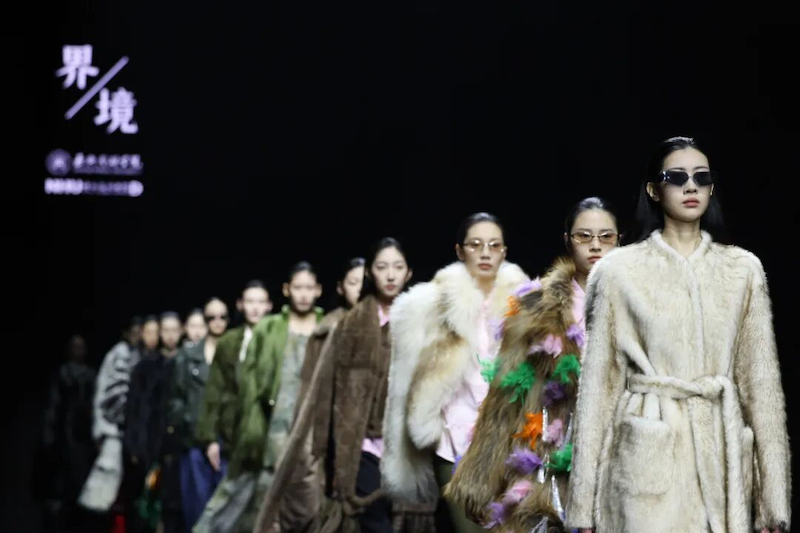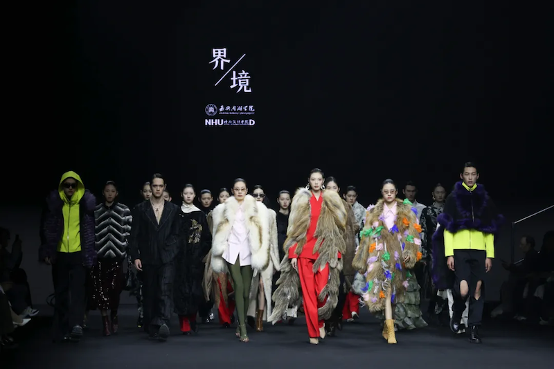 3月23日,2026北京国际时装周“海宁日”专场发布会上,嘉兴南湖学院时尚设计学院师生团队携原创品牌“界·境”系列作品亮相。来自时尚行业、专业院校和关联企业的500余位嘉宾齐聚一堂,共同见证40套融合皮革塑形、皮草肌理与织锦纹章的创意作品亮相秀场,校党委副书记沈岱峰出席发布会。