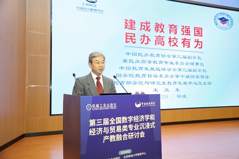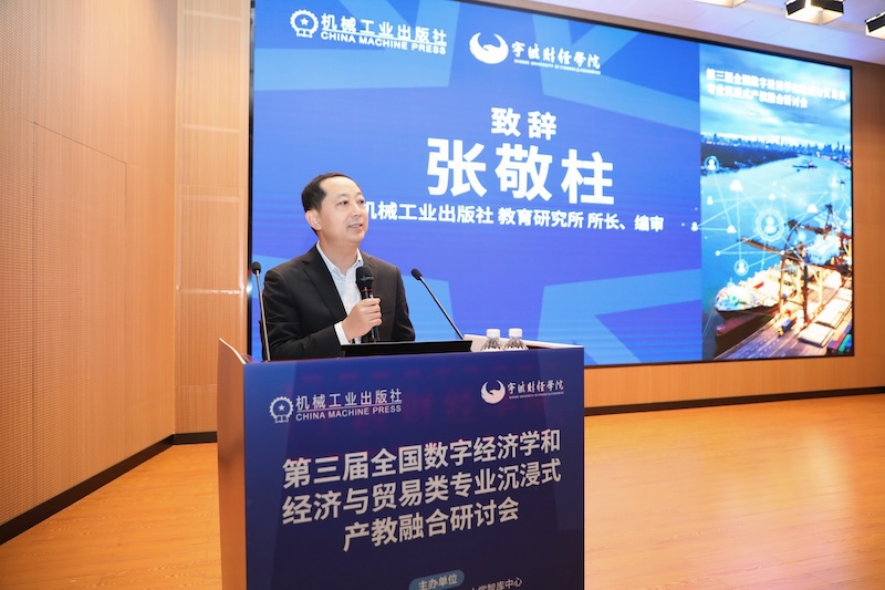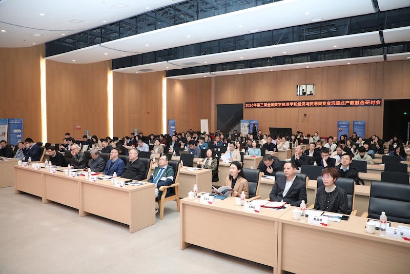 (通讯员:金鹏伟 摄影:徐凯阳 范武文昊)3月28日至29日,第三届全国数字经济学和经济与贸易类专业沉浸式产教融合研讨会在浙江宁波举行。本次会议由机械工业出版社、北京邮电大学智库中心联合主办,宁波财经学院国际经济贸易学院承办,汇聚国内数字经济与经贸领域十余位顶尖专家学者,围绕产教融合创新、数字经贸人才培养等核心议题开展深度交流,为新时代数字经贸专业建设与应用型人才培养提供新思路、新方案。