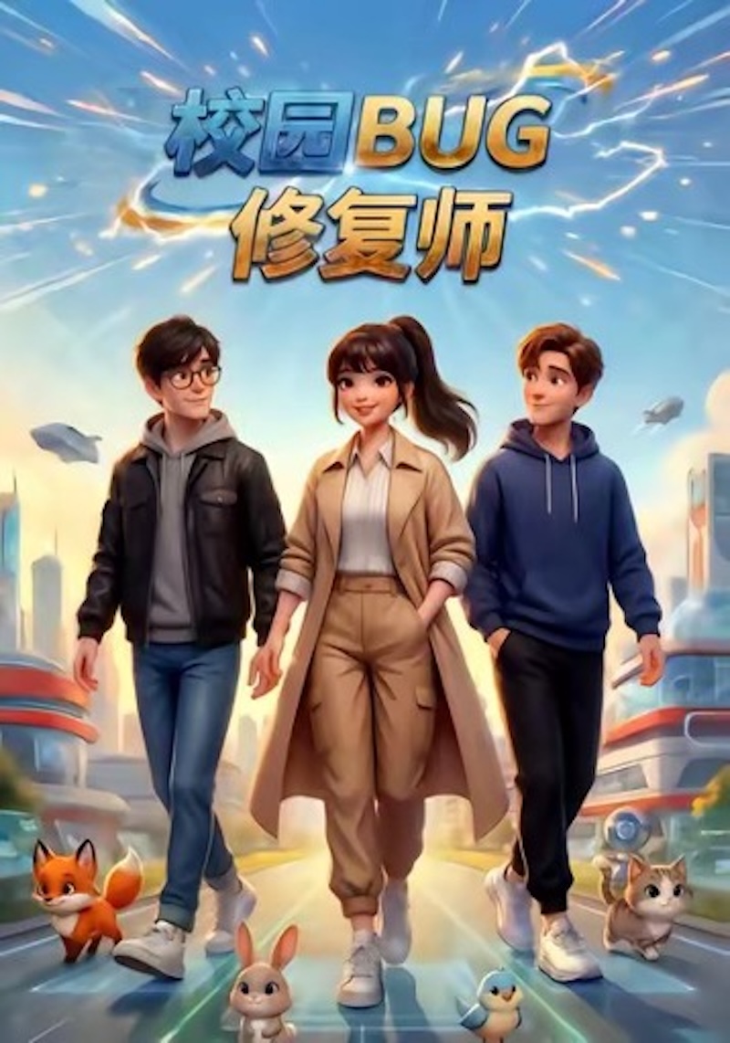 与老师的交流,让施雯萌生了把青春困惑制作成短剧的念头。这在一年前几乎是不可想象的——一部20集体量的网络短剧,往往需要一个专业的拍摄剧组才能完成。而AIGC技术的普及,正使这种个人化的影像表达成为可能。于是,施雯走进了学校“师生共创”的AICINE华语影像工作室。这间工作室既是学校向学生普及AI影视技术的教学平台,也是大学生们碰撞创意、落地创作的实践阵地。去年冬日,施雯与学弟学妹们正是在这里开启了一次次头脑风暴。“没有刻意套路,不编悬浮剧情,我们从自身经历与身边日常中挖掘素材,将共同的青春困惑与喜怒哀乐,一点点打磨成剧本、塑造成角色,最终将作品命名为《校园BUG修复师》。”团队分集导演兼技术支持廖泽君同学说。