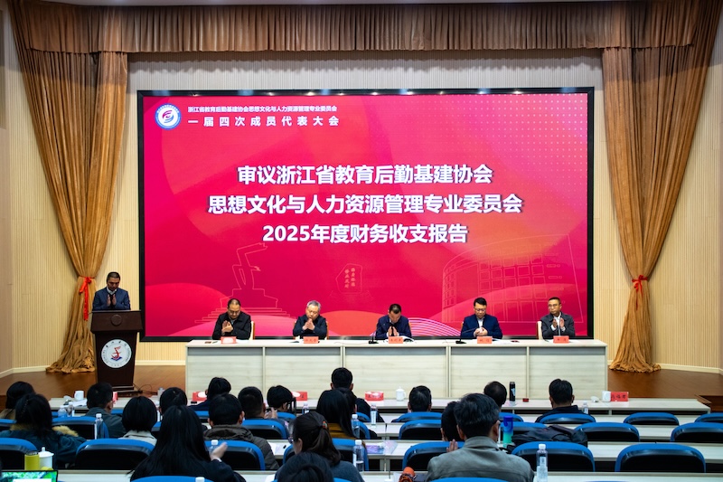 姚信向大会作思专会2025年度工作报告。他全面总结了过去一年的工作成果,并对2026年度思专会重点工作进行了介绍。他指出,2025年,思专会紧紧围绕思想政治、组织文化、人力资源“三位一体”工作体系建设目标,以“党建引领、文化铸魂、人才强基”为工作主线,凝心聚力、务实笃行,圆满完成了年度各项工作任务,为全省高校后勤事业内涵式发展贡献了积极力量。2026年思专会将继续深化理论武装,抓实树立和践行正确政绩观学习教育,筑牢后勤发展思想根基;强化党建赋能,推动党建业务深度融合,提升党建引领发展效能;聚焦育人提质,丰富后勤育人实践路径,擦亮后勤育人浙江品牌;加强队伍建设,锻造高素质后勤人才队伍,提升人力资源管理精细化水平。