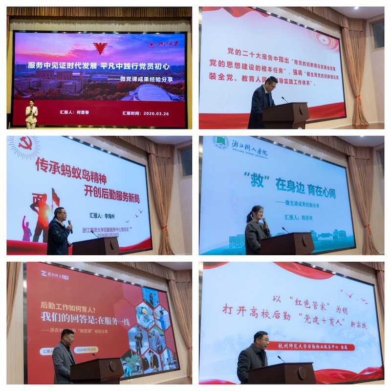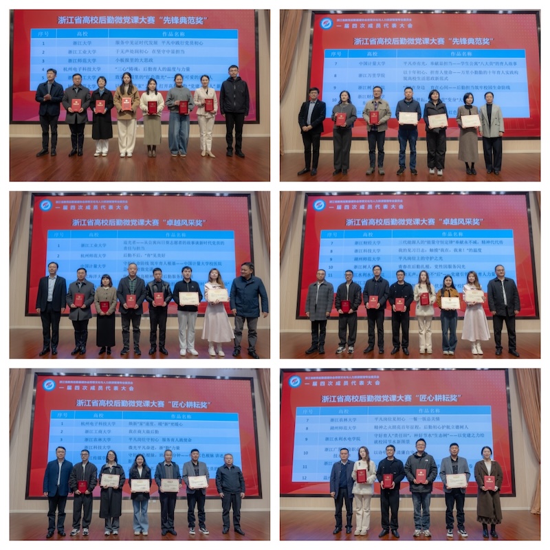 会上,台州学院原党委副书记金先龙作《夯实基础、全面发力 奋力开创中国式现代化建设新局面——学习贯彻党的二十届四中全会精神》讲座,讲座内容丰富、讲解生动、论述精辟,为参会人员带来了一堂有理论深度、精彩生动的思政大课;浙江大学、浙江工商大学、浙江海洋大学、浙江树人学院、浙江农林大学、杭州师范大学等高校结合各自特色工作亮点做了微党课成果经验分享。大会还对35个浙江省高校后勤微党课大赛获奖作品进行了颁奖。