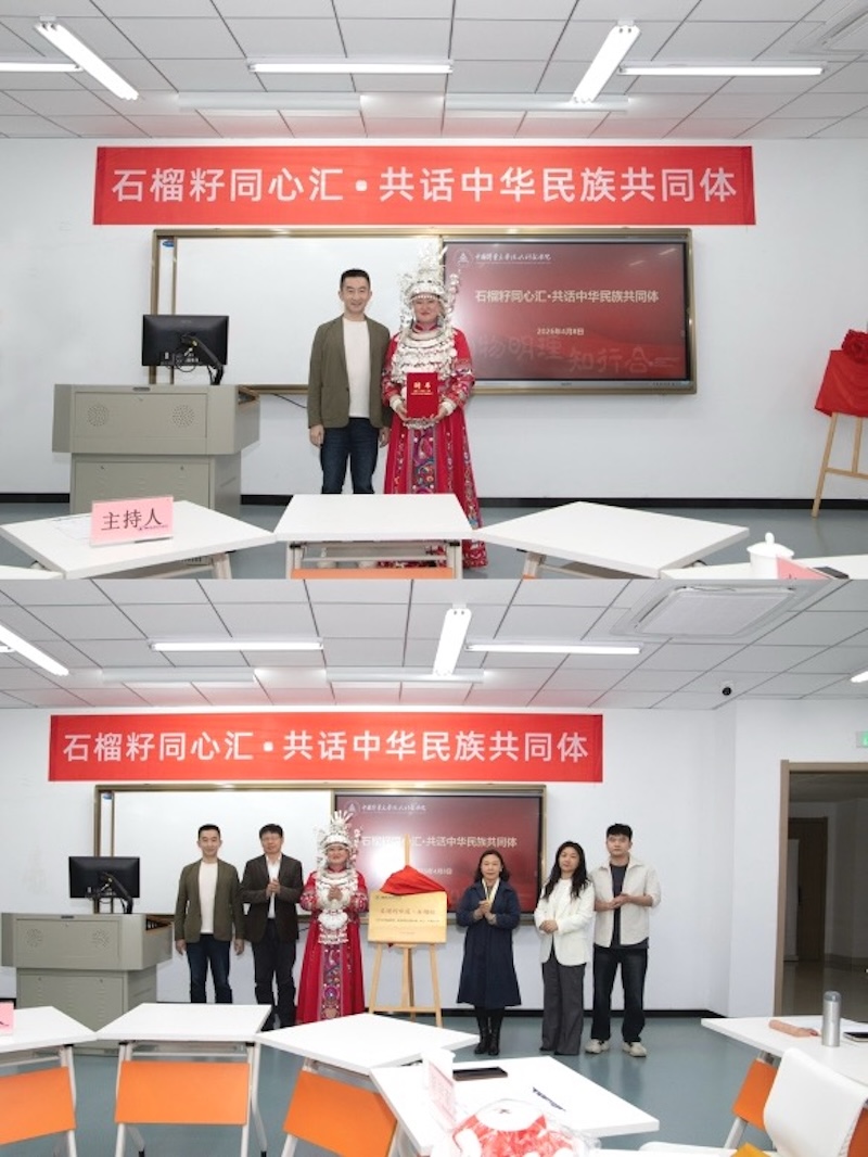 活动现场播放着《爱我中华》的动人旋律,各族师生欢聚一堂,处处洋溢着温馨和谐的氛围。学校首先为张莉同志颁发“民族团结进步指导教师”聘书,聘任其为学校民族团结教育的特聘导师,助力学校构建全方位、立体化的民族团结育人体系。随后,在全场热烈的掌声中,马克思主义学院院长胡宇南与张莉共同为“真理的味道·石榴红”大中小学思政教育一体化实践基地暨“彤云·石榴红家园”揭牌,标志着学校在深化思政教育改革、推进大中小学思政教育纵向贯通、校内外协同联动上迈出了坚实一步,将有效整合优质教育资源,为青少年成长成才培根铸魂。