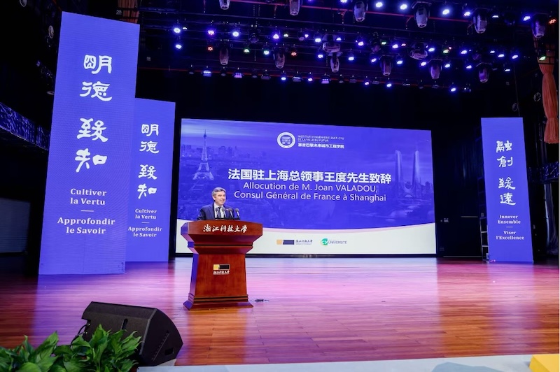 出席活动的法国驻上海总领事王度对塞吉巴黎大学与浙江科技大学的合作成果给予充分肯定,高度评价浙江在开放创新、国际人才交流方面的优势。他表示,法国与浙江交往历史深厚、各领域交流密切,尤其在教育科技合作方面成果丰硕,期待进一步深化中法教育交流与合作,共同推动国际人才培养。王度鼓励青年学生成为中法文化、人文、科学交流的参与者、推动者。