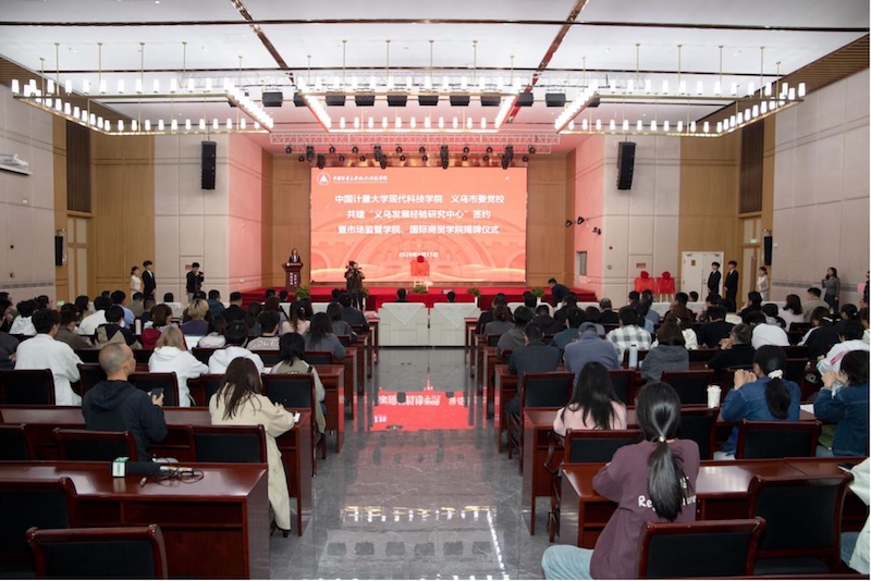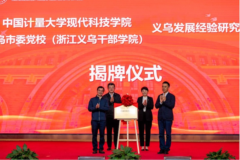 (通讯员:何垚)4月15日下午,“义乌发展经验研究中心”在中国计量大学现代科技学院揭牌成立,学院新设市场监管学院、国际商贸学院同期揭牌。义乌市委常委、常务副市长龚淑娟,中国计量大学党委副书记、现代科技学院董事长王迪钊出席仪式并讲话。义乌市相关单位负责人、学院党政领导班子成员、各二级单位主要负责人、学院师生代表等参加。仪式由学院党委书记叶子弘主持。